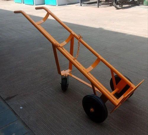 Mild steel trolley specifically designed for oxygen cylinders in hospital applications. Features a paint-coated finish and 3 wheels for stable transport of one cylinder.