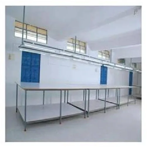 Fabric cutting table constructed from mild steel and plyboard, featuring a polished finish. Specifically designed for use in the hosiery industry.