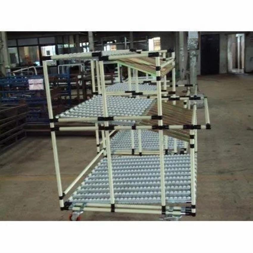 Mild steel FIFO racks with PVC coating for rust-proof storage. Customized dimensions, 2-ton capacity. Suitable for industrial use.