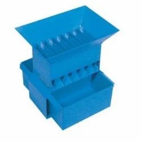 Blue, square hopper Riffle Sample Divider made of mild steel. Ideal for precise sample division in laboratory applications. Manufactured in India.