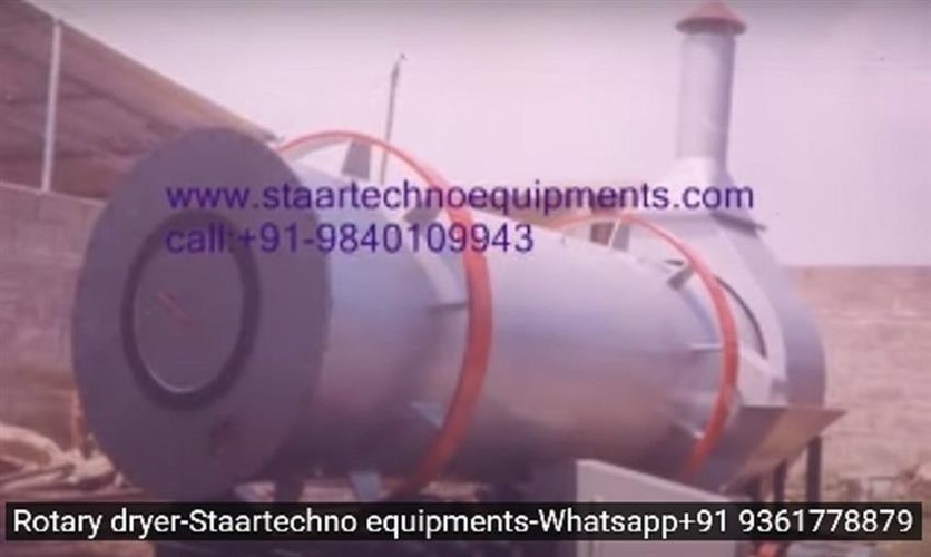 Mild steel automatic rotary sand dryer with 1tph capacity. 3-phase, 3hp motor, 300°C max temperature. Customized design, electric power. Size: 2000x60000.