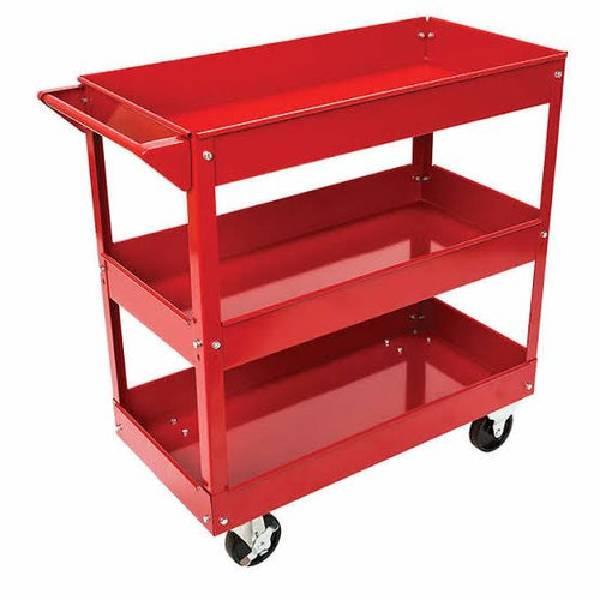 Red mild steel service cart with 3 load drawers. Color coated finish, 100-200 kg capacity. Suitable for industrial applications.