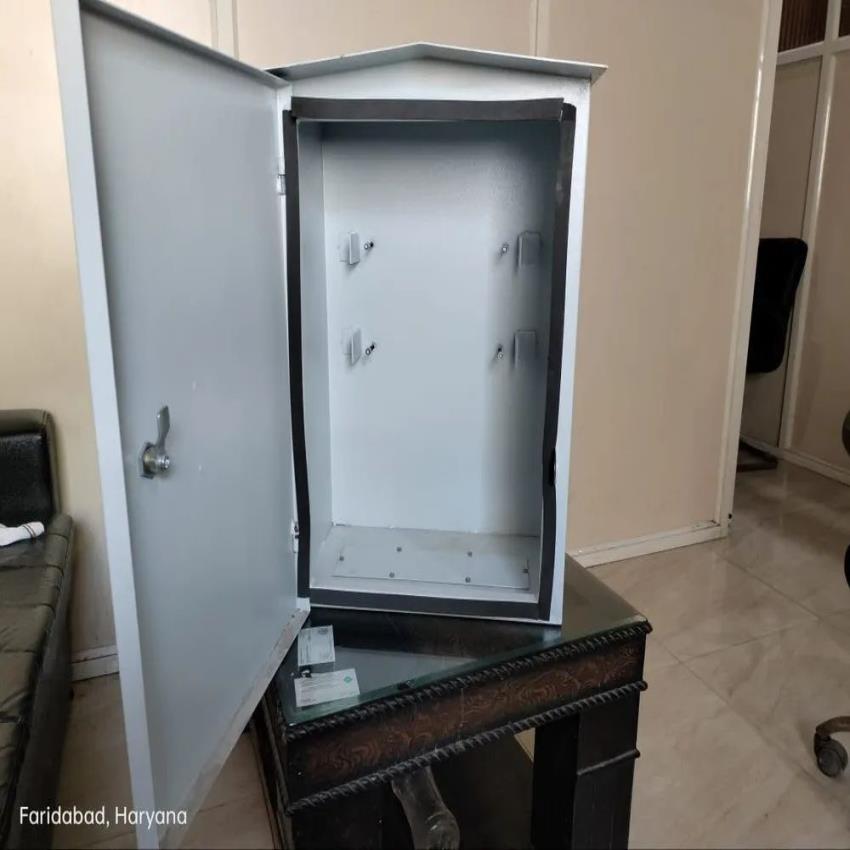 Lockable, weatherproof square power meter box. Made of mild steel (MS) in white. Manufactured in India. Suitable for outdoor use.