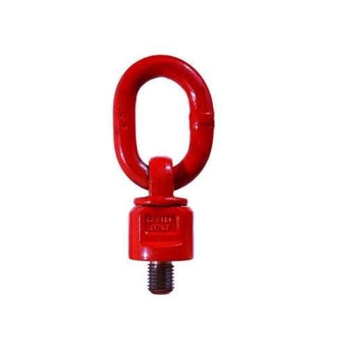 Red mild steel swivel eye bolt for construction applications. Features 360-degree rotation for versatile lifting and rigging. Available in sizes M8 to M72.