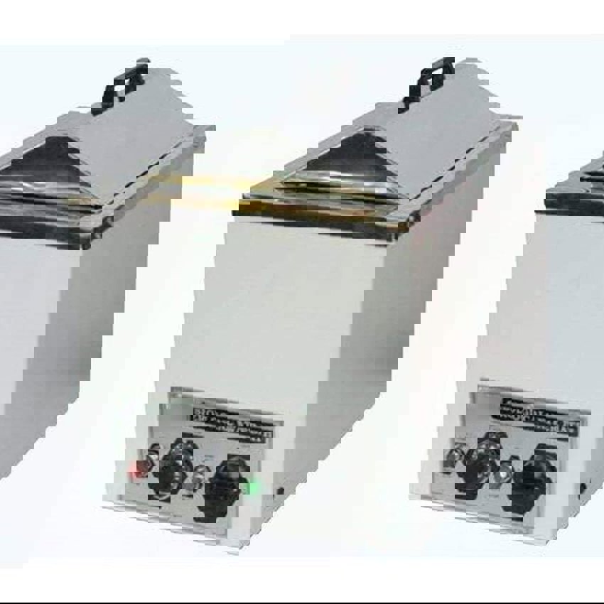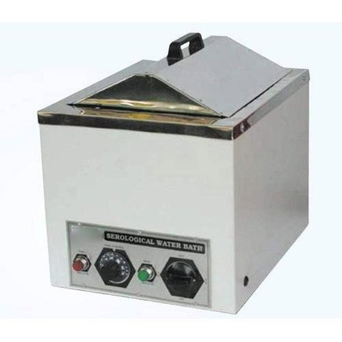 Manual mild steel serological water bath with thermostatic gain control. Features a 10 LTR capacity and operates on 220V. Ideal for basic laboratory heating.