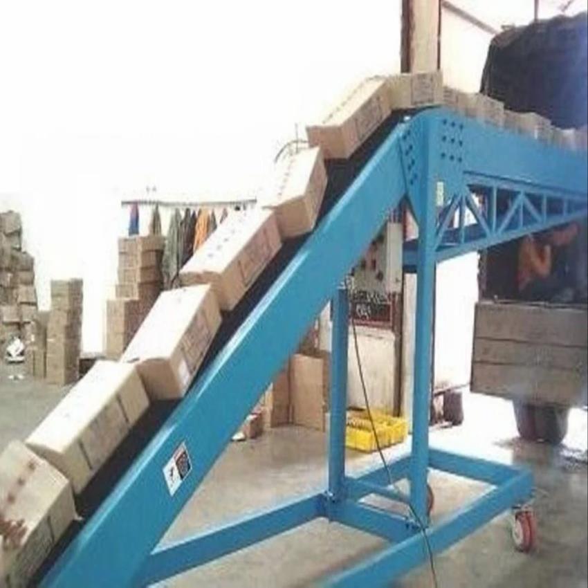 Semi-automatic mild steel truck loading conveyor. Capacity 100 Kg Per Feet, 20-inch belt width, PVC belt material. Made in India.