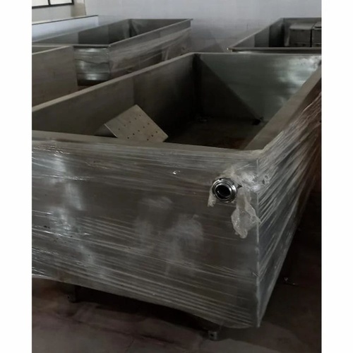 1000 L horizontal milk dump tank. SS316 stainless steel with a polished surface finish and rectangular shape.