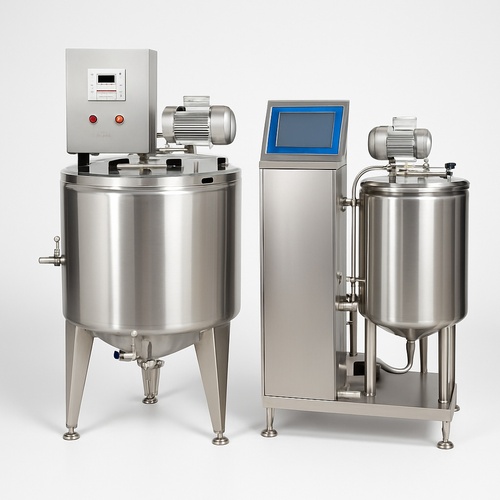 Stainless steel milk pasteurizer plant with 100-5000 Lit./Hour capacity. Customized design for efficient and hygienic milk processing.