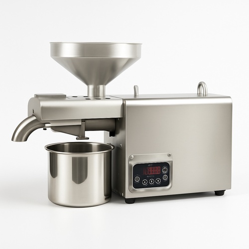 Mini commercial peanut oil machine for cold pressing. Features BP prevention and compact dimensions of 580x200x370mm. Manufactured in India. Ideal for small-scale production.