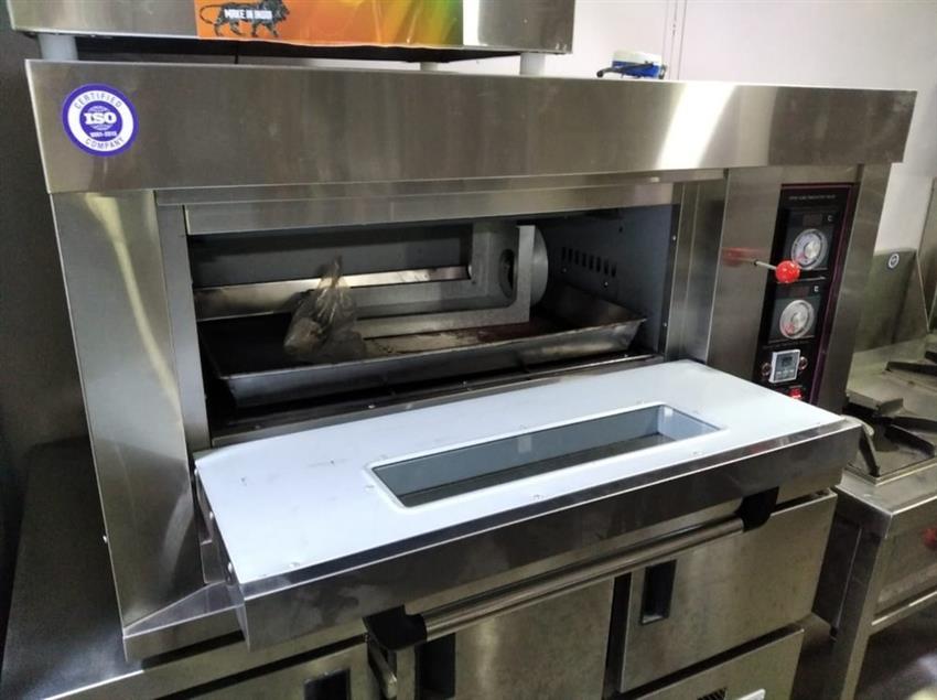 Small/mini electric convection oven designed for pizza baking. Semi-automatic operation, ideal for bakery use.