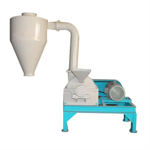 The VIP-12 mini impact pulverizer features a 7.5 HP motor and operates at 2800-3500 RPM. It achieves fineness of 100-300 mm and processes 50-60 Kg/Hr.