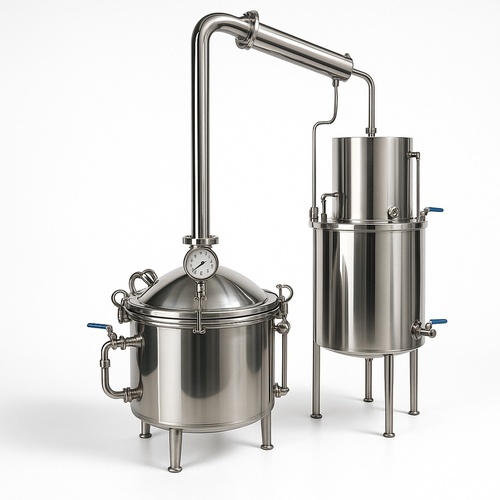 Semi-automatic mini solvent extraction device from stainless steel. Operates at 240V for herbal, floral, spices, colors, and phyto chemicals extraction with 500 TPD capacity.