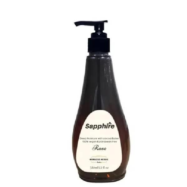 A rich, deeply moisturizing body lotion infused with Sapphire Rose. Designed to nourish and hydrate the skin, leaving it soft and supple. Suitable for all skin types.