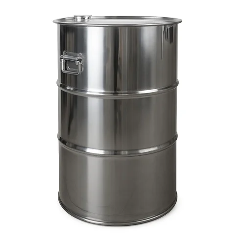 Stainless steel storage drum with a mirror finish. Available in 3-4 feet height, 3-5 mm thickness, and 100-200 Kg capacity.