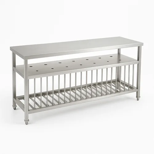 Durable stainless steel plate rack with mirror polished finish. Capable of holding up to 50 Kg. Ideal for efficient and stylish plate storage.