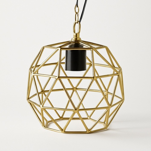 Iron football hanging lamp, golden finish. Diameter 18 cm, height 22.5 cm. Weight 536 gms. Packaged in a box. Ideal for decorative lighting applications.