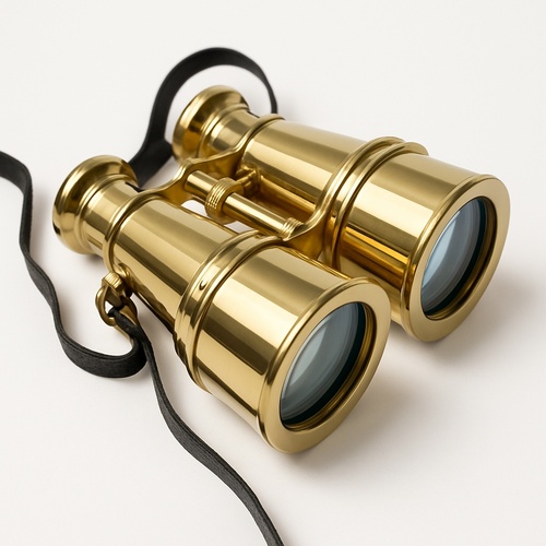 Modern binocular featuring brass construction with a nautical appearance. Offers 1.5" lens diameter. Focus system and objective lens focus adjustable as per need. Vision type 100%.
