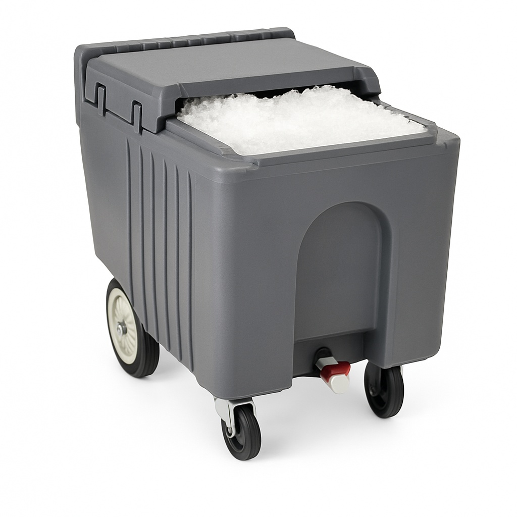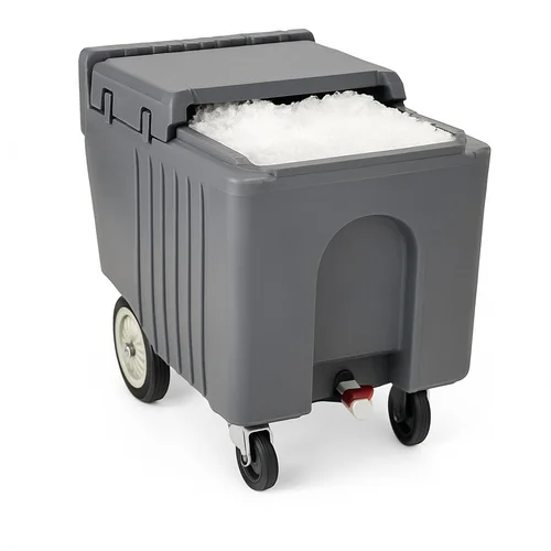 This mobile ice equipment is designed for portability and convenience. Ideal for transporting and storing ice in various settings. Durable construction ensures long-lasting performance.