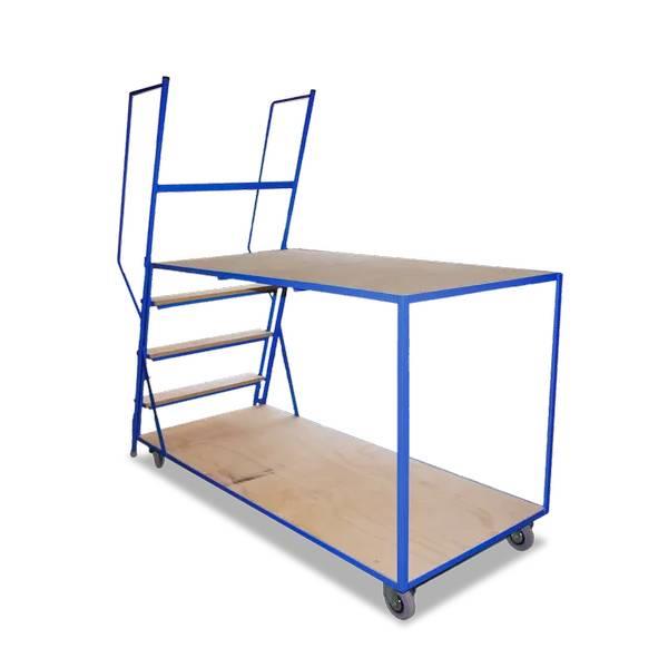 This mobile ladder step trolley provides convenient access for various tasks. Its design facilitates easy movement and positioning.