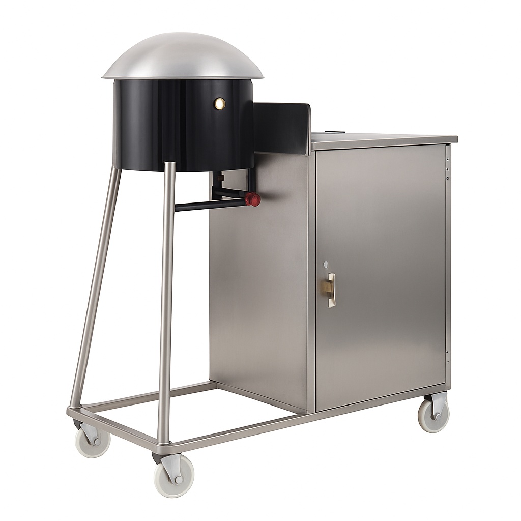 Mobile Silver Roomali Roti Counter for commercial use. 1050 x 600 x 900 mm size, portable with 4 wheels, Made in India.