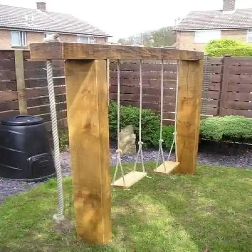 Wooden swing with a modern appearance, suitable for both home and commercial use. Crafted from durable wood for lasting appeal.