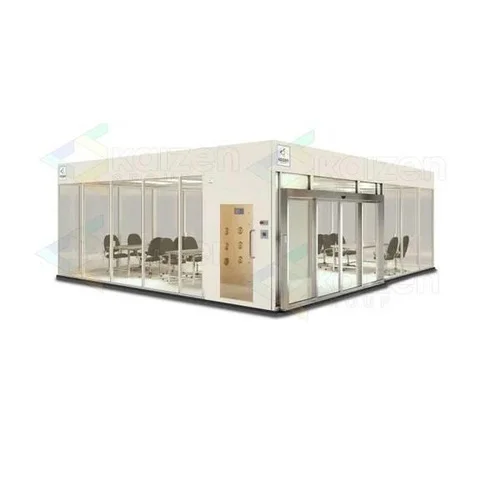 Modular cleanroom project featuring SS, MS, glass, and aluminum construction. 2424mm height with glossy door finishing for offline service.