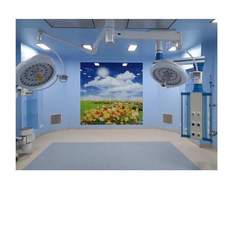 One-room modular operation theatre constructed from PVC and steel. Features a jointless surface finishing and 400 Lux brightness. Designed for hospital and medical use.