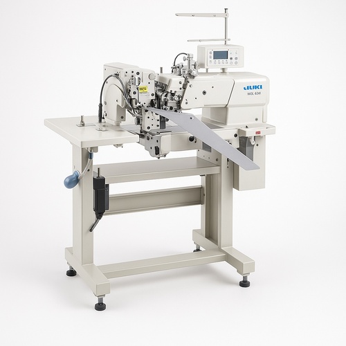 Automated two-needle sewing machine designed for efficient belt-loop attachment in textile production. Reliable operation for high-volume apparel manufacturing.