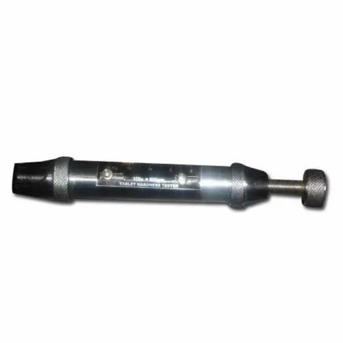 Stainless steel tablet hardness testing machine, SS316 grade. Polished finish, 6-8 inch length, 70-125 gram weight. Ideal for laboratory use, packaged in a box.