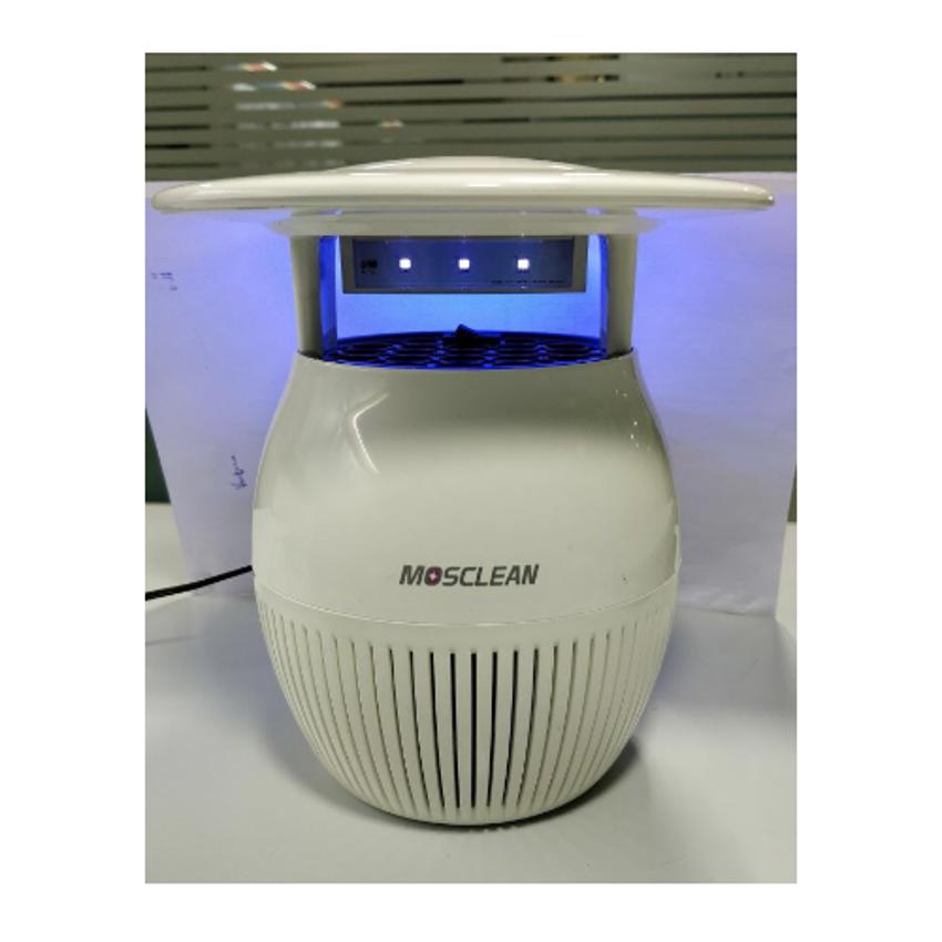 The Mosclean IH2 mosquito trap uses optimized UV LEDs and CO2 for dehydration. Operates at 6.4W max with 30 dBA noise. Includes 100-240V adapter.