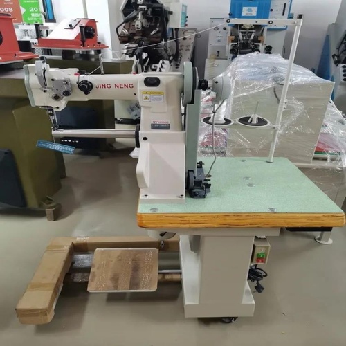 Industrial sole stitching machine, model JN-168SZ. Motor operated with mild steel body, requiring 5 KW electric power. Ideal for high-volume footwear production.