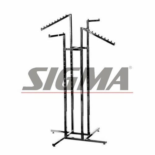 Movable Stainless Steel Four Way Garment Rack SS, For Showrooms