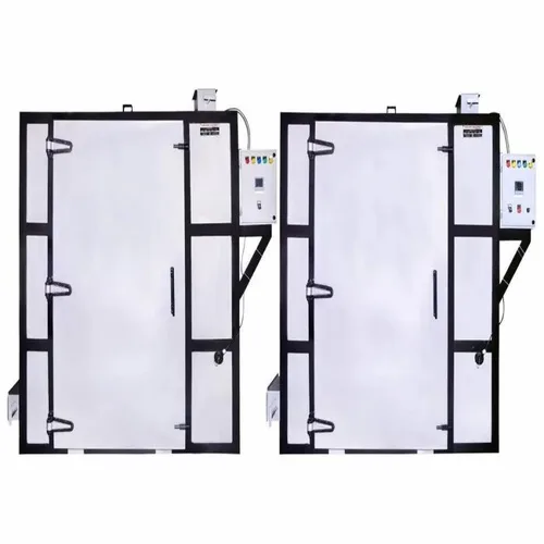 Semi-automatic MS industrial dryer for dry applications. Features a maximum temperature of 250'C, 3-phase power, and a 415V voltage. Offers 400'deg color surface finish.