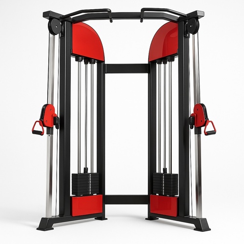 MS cable pulley equipment designed for gym use. Made in India with a red and black color scheme. Minimum order quantity of 1 unit. Robust construction for commercial fitness.