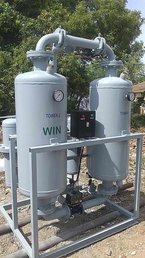 MS desiccant dryers with a drying capacity range of 121-500 CFM. Designed for a maximum pressure of 8 bar. Durable construction for industrial use.