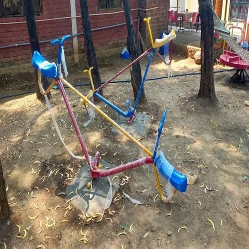 This outdoor seesaw equipment features an MS frame and is designed for 2 seated users, suitable for school applications. It has a powder-coated surface finish.
