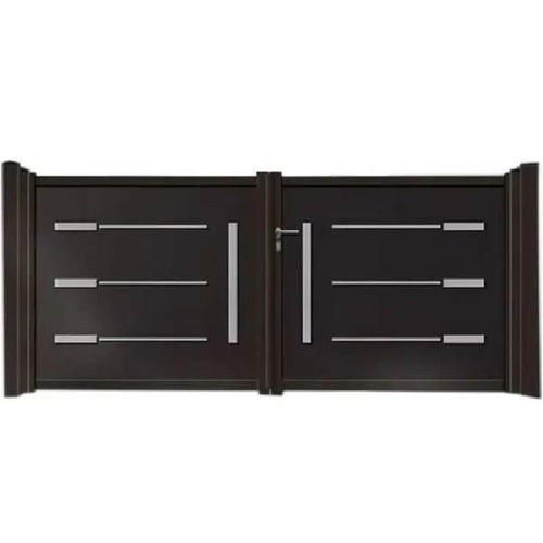 Modern design Mild Steel hinged gate for house use. Features a manual frame, black color, and 13mm thickness.