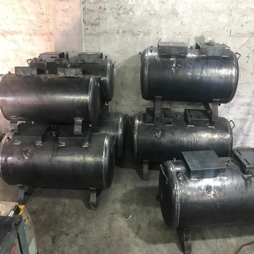 MS Horizontal Air Tank Receiver, 500 L storage capacity. Features 100 psi pressure rating and durable black MS construction. Ideal for industrial air systems.