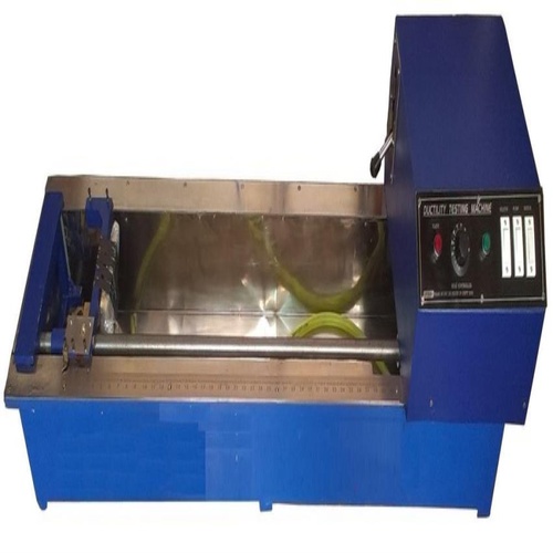 MS semi-automatic ductility testing machine with a rotating shaft speed of 5 cm/min. Operates at 27°C ± 0.5°C, with a testing range of 1.5-2m. Single phase power.