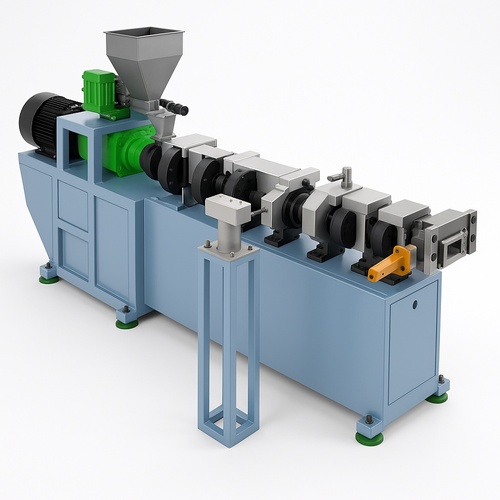 Semi-automatic MS single screw extruder for industrial applications. Extrudes 110-315 kg/hr with pipe diameters of 16-315 mm, powered by 40 kW electric.