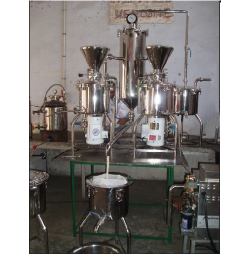 MS automatic soya milk making machine with 40 Ltr/Hr capacity. Features 0.75 Kw grinding power and compact dimensions for efficient operation.