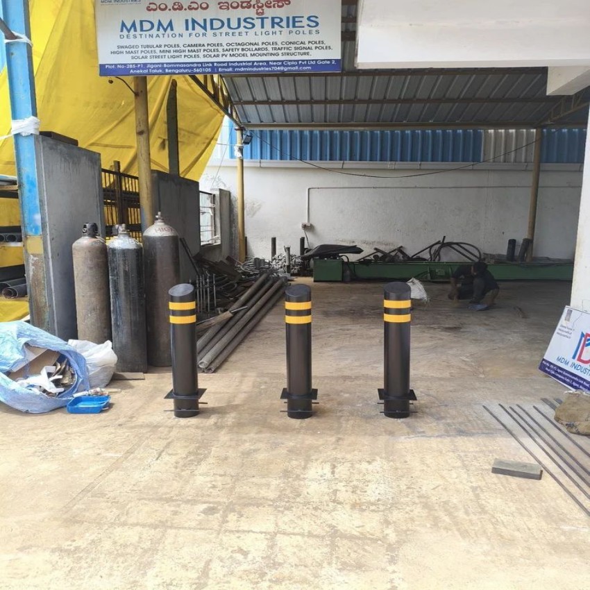 MS bollard with 30J impact resistance. Secured via bolting for reliable traffic management and control in various settings.