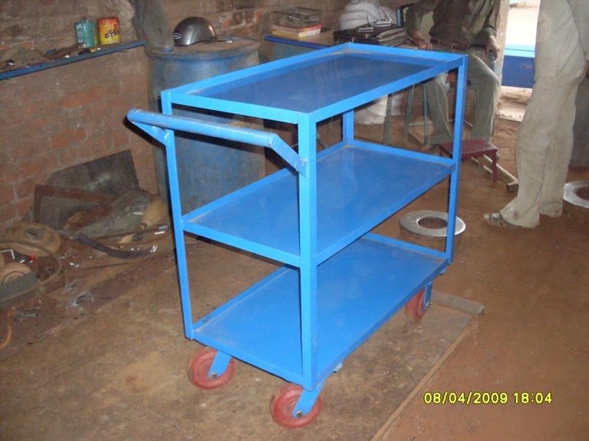 MS trolley with 1-2 Ton capacity, 50-100 kg load capacity. Features polished, color-plated industrial-grade MS material for durable use.