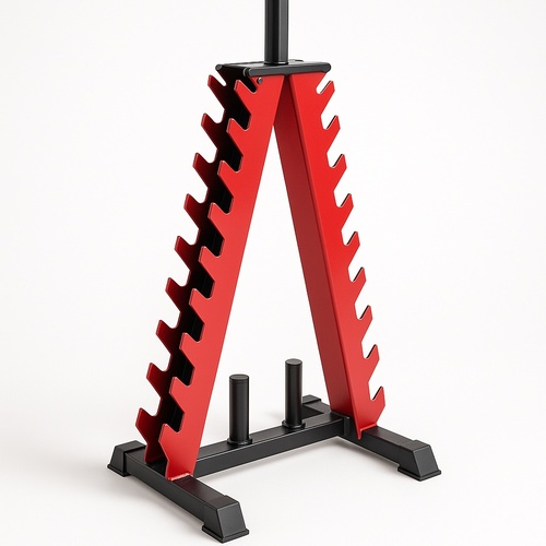 MS vertical fitness equipment stand for commercial use. Powder coated finish with customer choice color. Features 2 stations and plate load resistance.