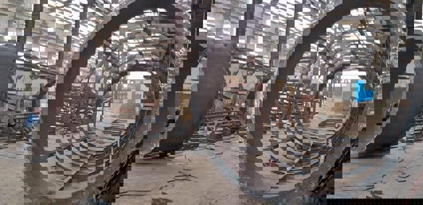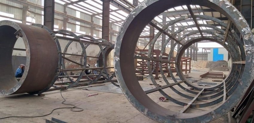 Carbon steel trommel machine for waste conversion, 200 TPD capacity. Features 440V electronic power, automatic grade, and 40 KW energy consumption. Occupies 50x20 meters space.