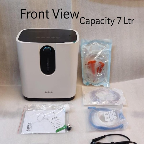 Electrical portable oxygen machine, AC 220V/50Hz, in white. Operates at 43 dB sound level and weighs 7 kg. Model MZPTB-O2.