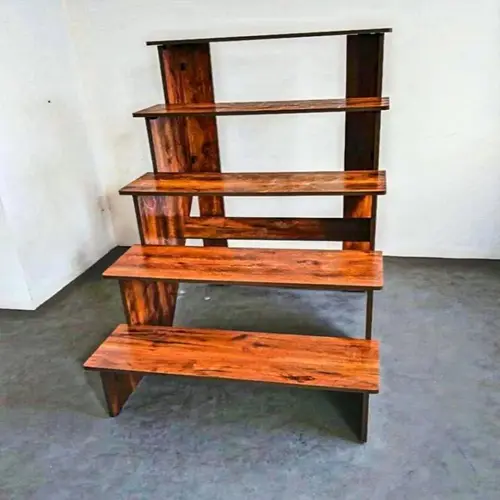 Brown/black wooden Navarathri Golu stand, 5x3 size. Suitable for festivals. Assembled on-site. Open storage, 35KG item.