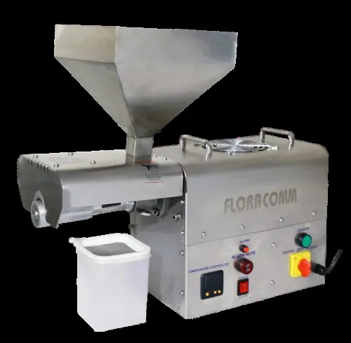 Commercial-grade, 1 HP motor. This automatic machine processes 10-15 Kg/hr. Stainless steel contact parts, single-phase electric connection.