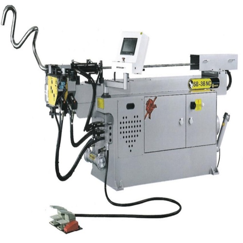 Automatic NC control hydraulic tube bending machine, Model SB-38NC. For industrial use. Max bending radius 150-600mm, max angle 185-190 degrees, 9 bends per tube.