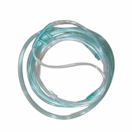 Sterile neonatal oxygen nasal cannula, 2mm diameter, 2m tube length. Features straight prong style and lip tab for secure fit. Hospital application.